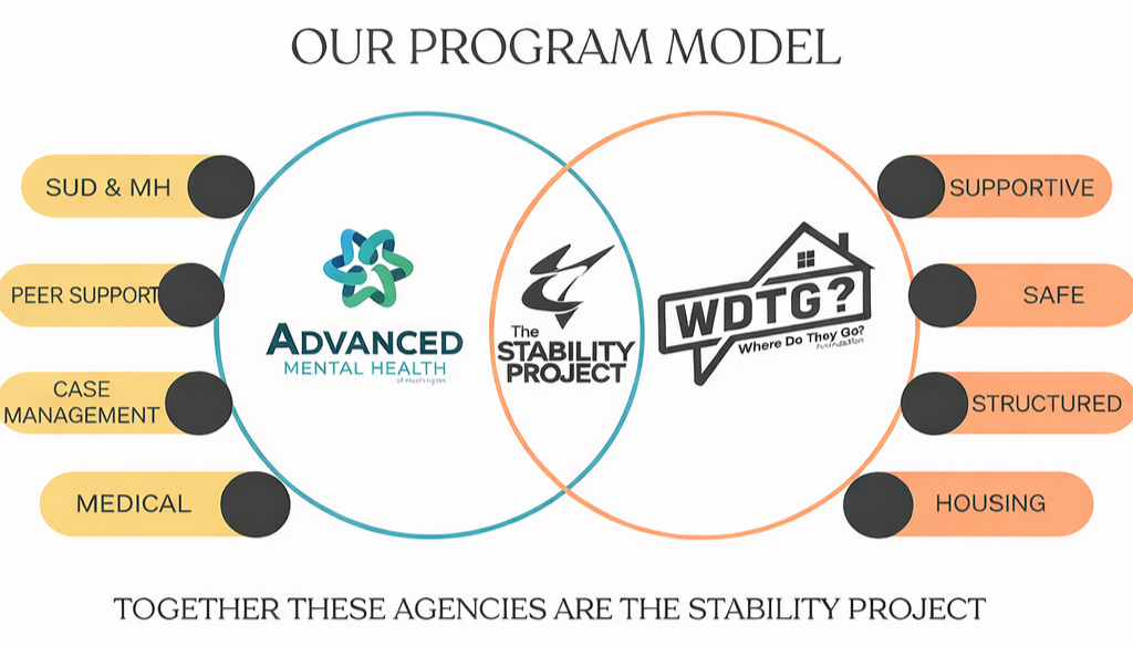 The Stability Project is the integrated community initiative uniting Advanced Mental Health of Washington and Where Do They Go Foundation to provide coordinated behavioral health care and supportive housing that helps individuals build lasting stability and independence.
